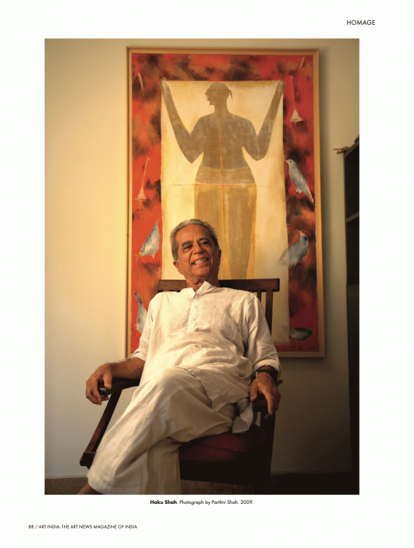 Haku Shah (1934-2019) was an artist, designer, teacher, scholar, curator, cultural anthropologist and writer rolled into one. His knowledge of the folk and tribal arts of India was exceptional, and he was even more exceptional as a person gentle and soft-spoken, he almost erased himself and allowed the objects of his study and their makers to speak through him.