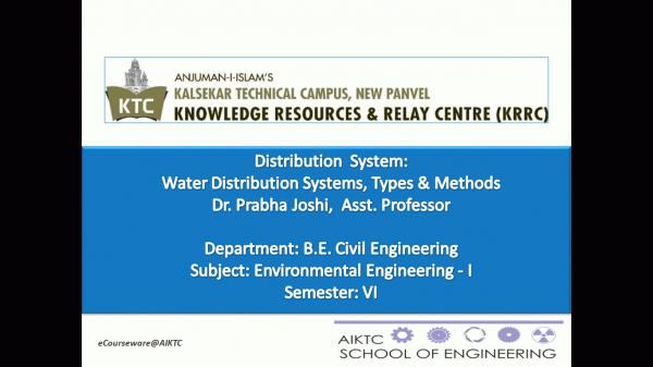 eCourseware material like PPT Presentation, Lecture Notes, Video, Question Bank, etc for Environmental Engineering - I, Sem VI