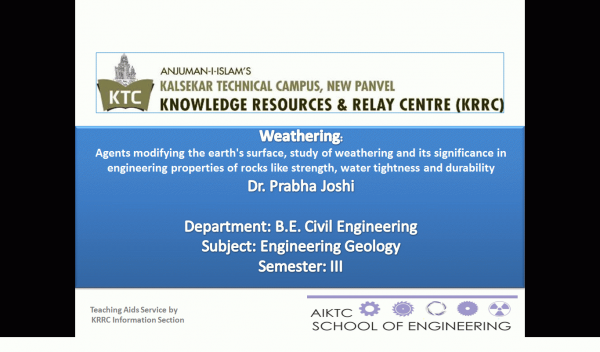 Weathering: Agents modifying the earth's surface, study of weathering and its significance in engineering properties of rocks like strength, water tightness and durability [Electronic Resources]