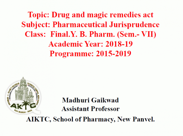 Publication details: New Panvel AIKTC, School of Pharmacy 2018